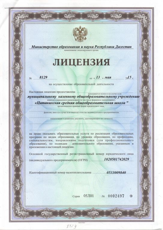 | Полное наименование образовательной организации* | Муниципальное казенное общеобразовательное учреждение "Цатанихская средняя общеобразовательная школа" |